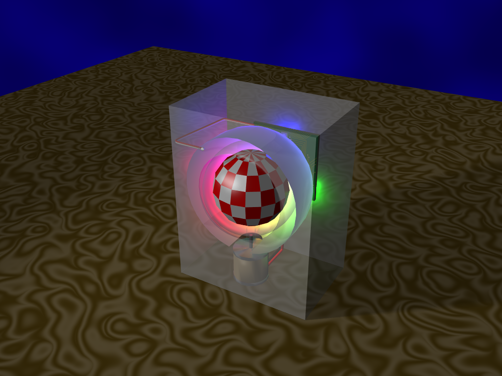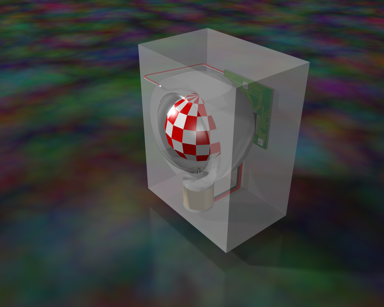 The boing ball should prefereably have flat faces (16x8) to stay true to the original animation on the Lorraine protoype at CES and to make it's rotation speed more visible from the blinking reflections.